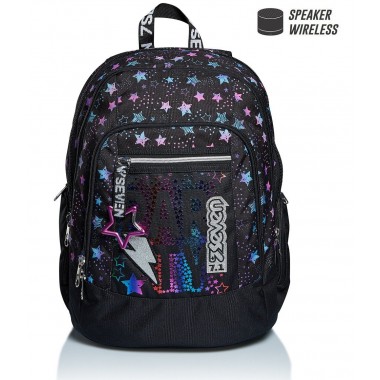 Doppio scomparto. Con SPEAKER WIRELESS amovibile sullo spallaccio per ascoltare la tua PLAYLIST e moschettone amovibile. Applicazione glitter. Inserti rifrangenti per una...