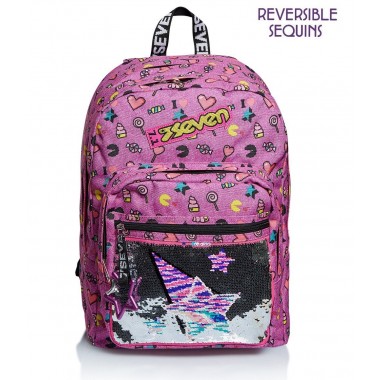 Doppio scomparto. Applicazione con paillettes reversibili. Inserti rifrangenti per una protezione a 360°. Logo e patch in vernice glitter. Con moschettone amovibile. Lo...