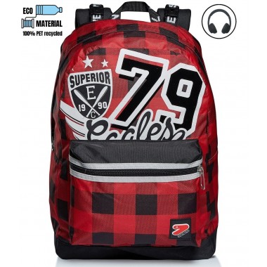 Zaino Reversibile. Scomparto unico con tasca applicata su entrambi i lati. Cuffie wireless incluse. Eco material. Schienale Imbottito e rivestito in tessuto. Sganciabile e...