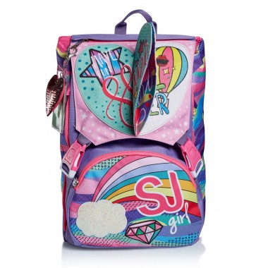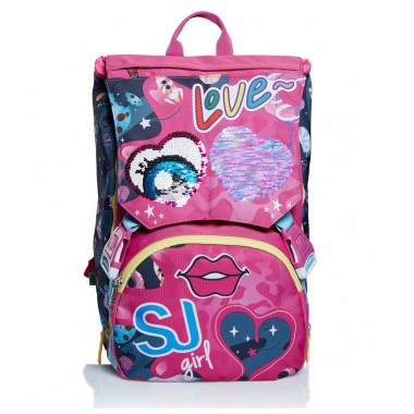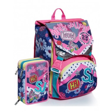 SCHOOLPACK composto da : Zaino doppio scomparto estensibile tramite zip laterali. Flip System: due diverse pattine calamitate e occhi su pattina principale in materiale...