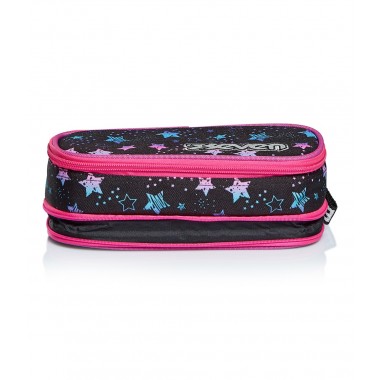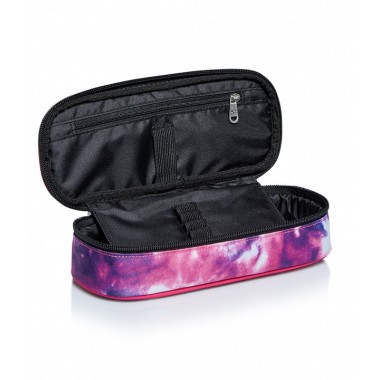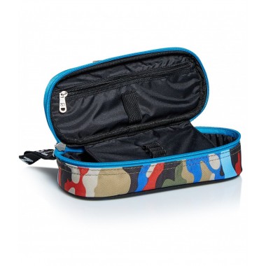 Portapenne ovale con divisorio interno con elastici porta penne. Taschino interno con zip. GARANZIA 2 ANNI.