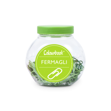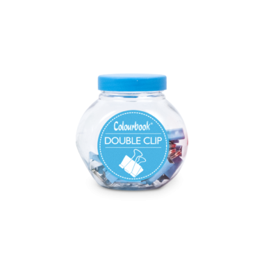 Double clip ferma carte metallici da 20 pezzi in barattolo da scrivania con rientranza laterale per appoggio inclinato.