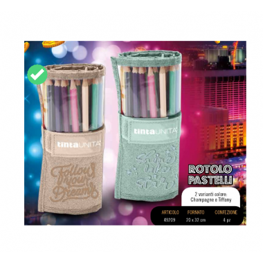 Rotolo glitterato della linea Glamour 2020 con 25 colori Tinta Unita. I colori Tinta Unita sono prodotti con legno esagonale con fusto...