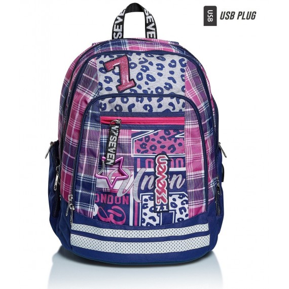 Doppio scomparto. Con SUPPORTO USB sul fianco dello zaino potrai collegare il powerbank e avere sempre una riserva di carica per lo smartphone e moschettone amovibile. Inserti rifrangenti per una protezione a 360°. Logo e patch applicati in vernice glitter. Schienale Ergosystem preformato con fondo integrato.